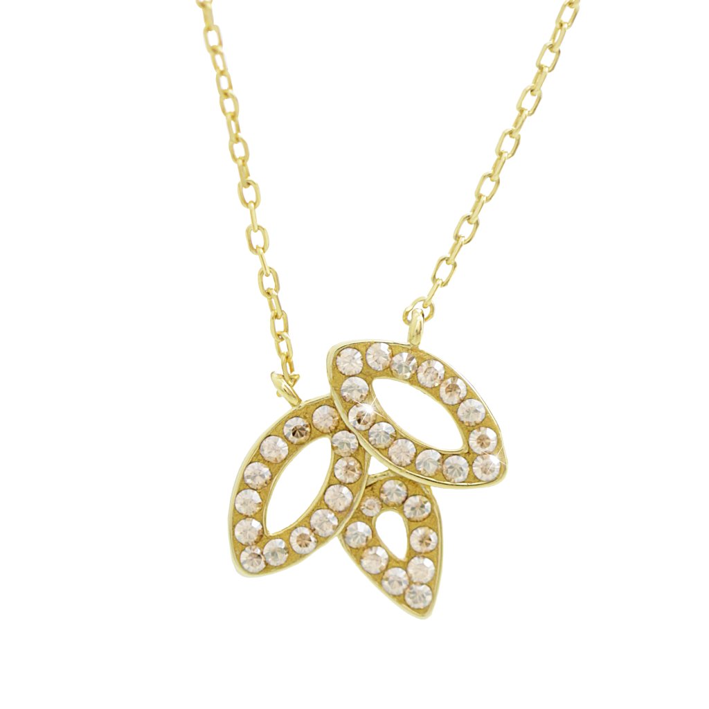 Stříbrný náhrdelník ve zlaté barvě s přívěskem, který tvoří tři malé lístečky. Decentní šperk zobený krystaly Swarovski v barvě Golden Shadow.