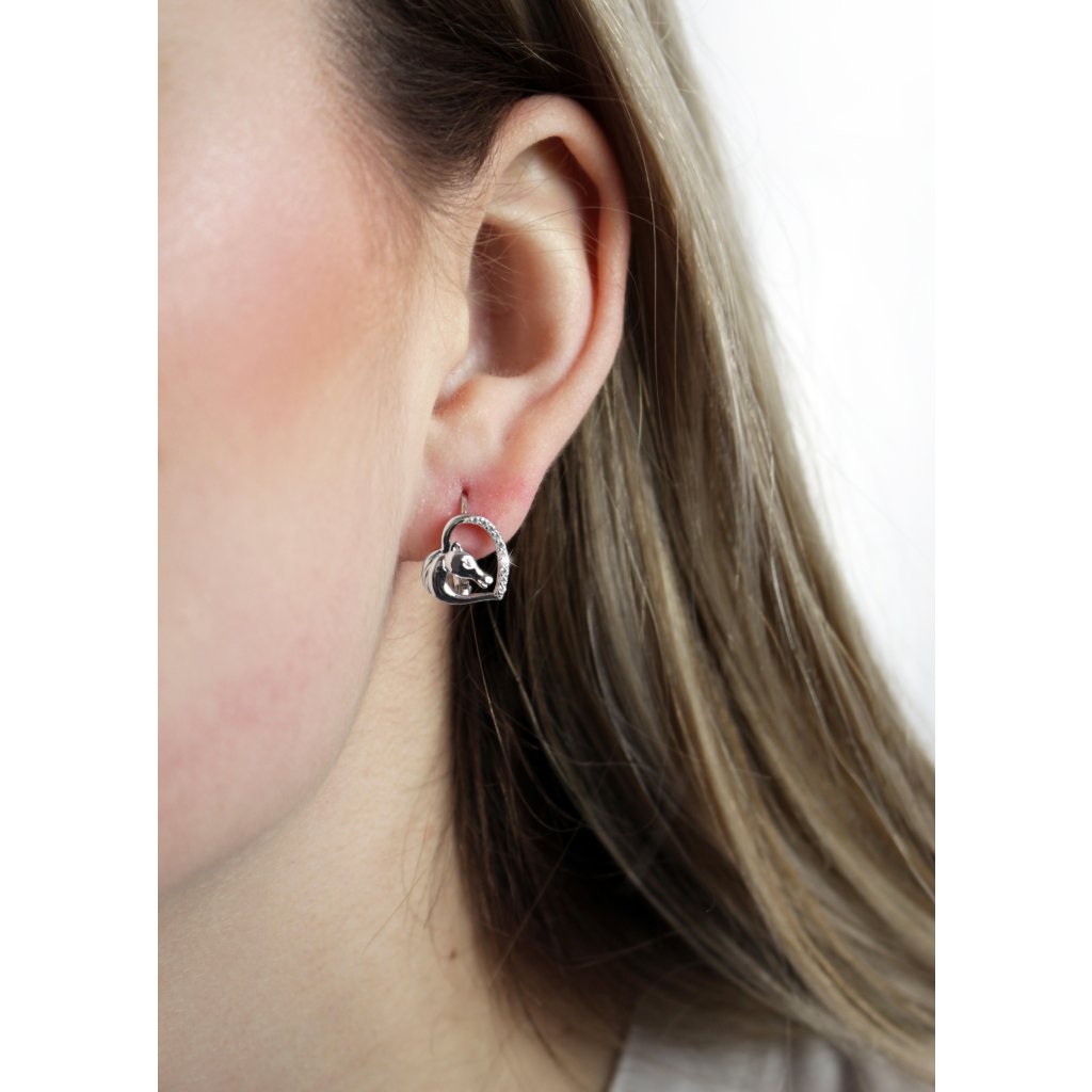 Náušnice srdíčko, rafinovaně spojené s hlavou koně. Srdíčko zdobí třpytivé Kubické zirkony v čiré barvě.