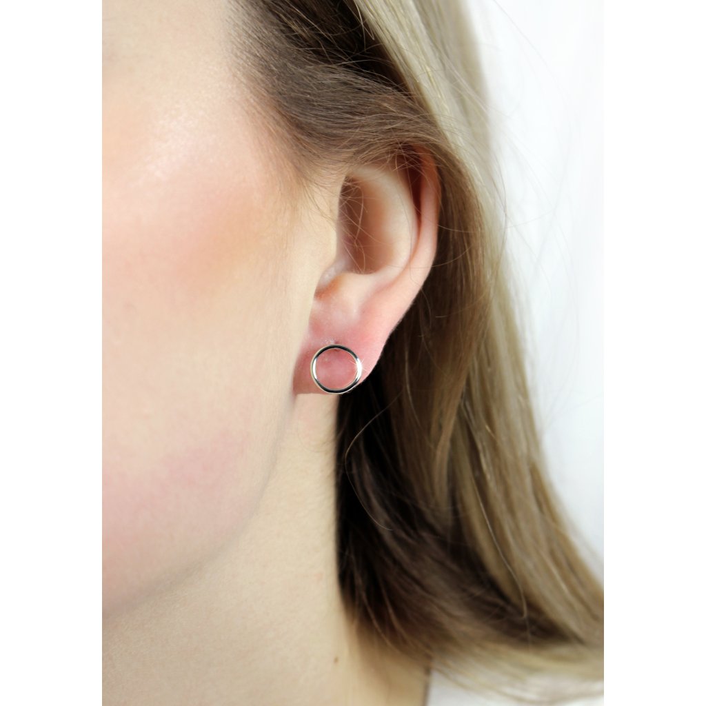 Stříbrné náušnice puzety obrysový kruh bez krystalů.