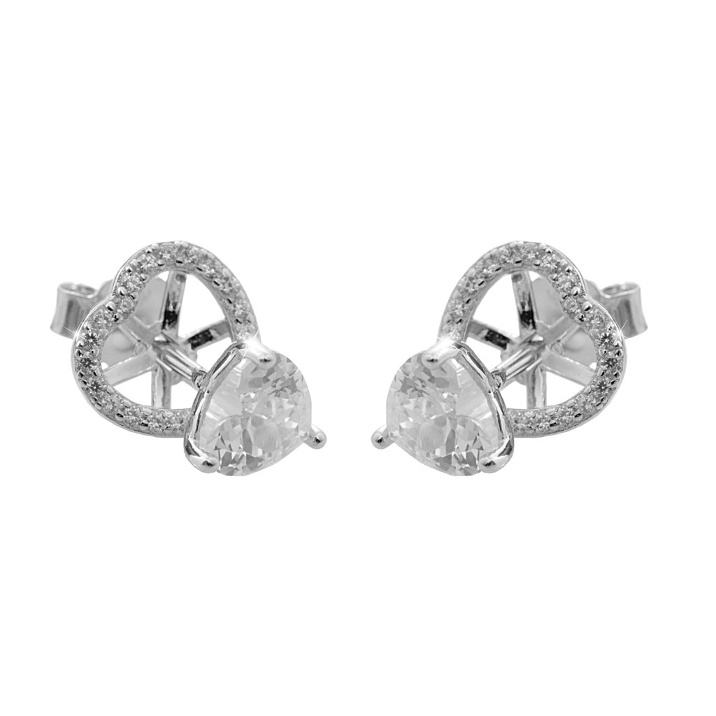 Stříbrné náušnice ve tvaru srdce. Náušnice jsou osázené třpytivými krystaly Swarovski.