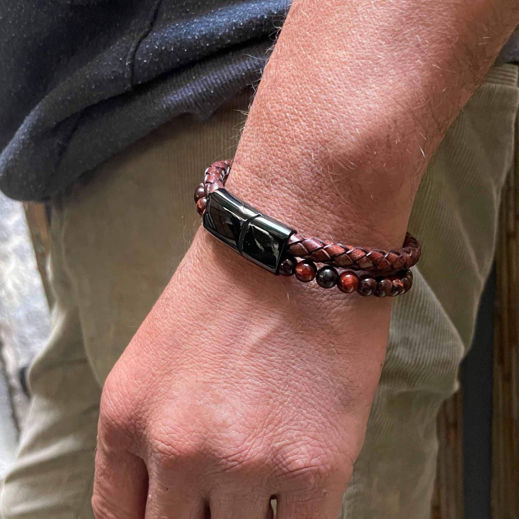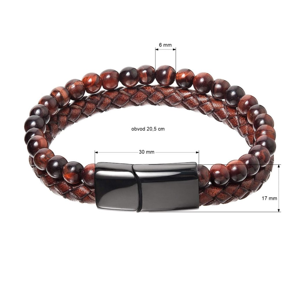 - dvojitý pánský náramek z koženky a kamenů tygřího oka
