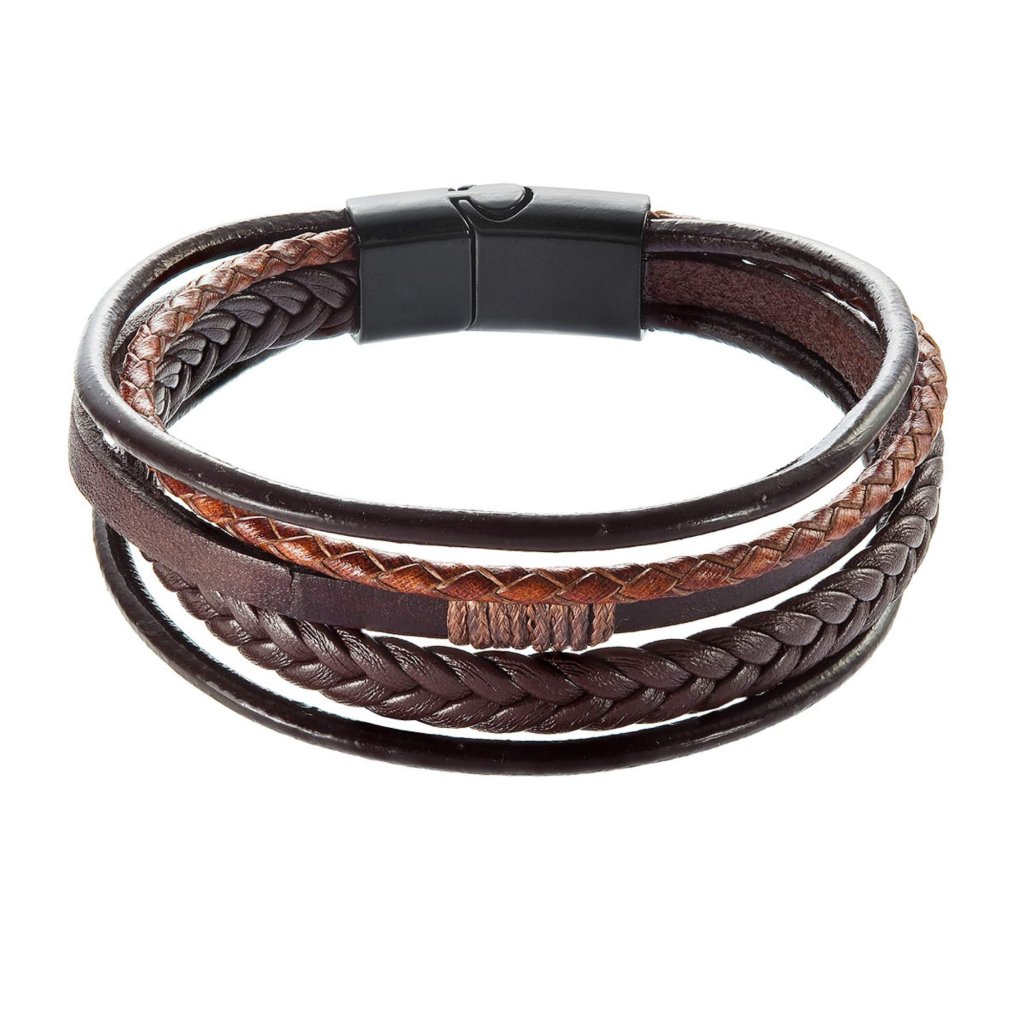Pánský náramek s koženkovými pásky a sponou na magnet.
