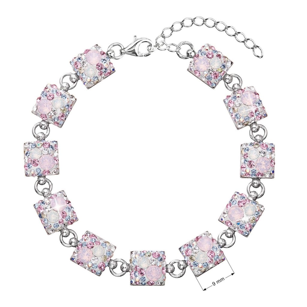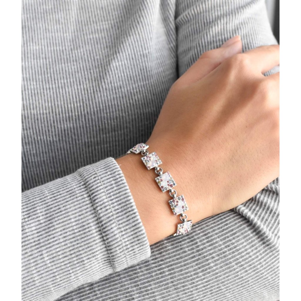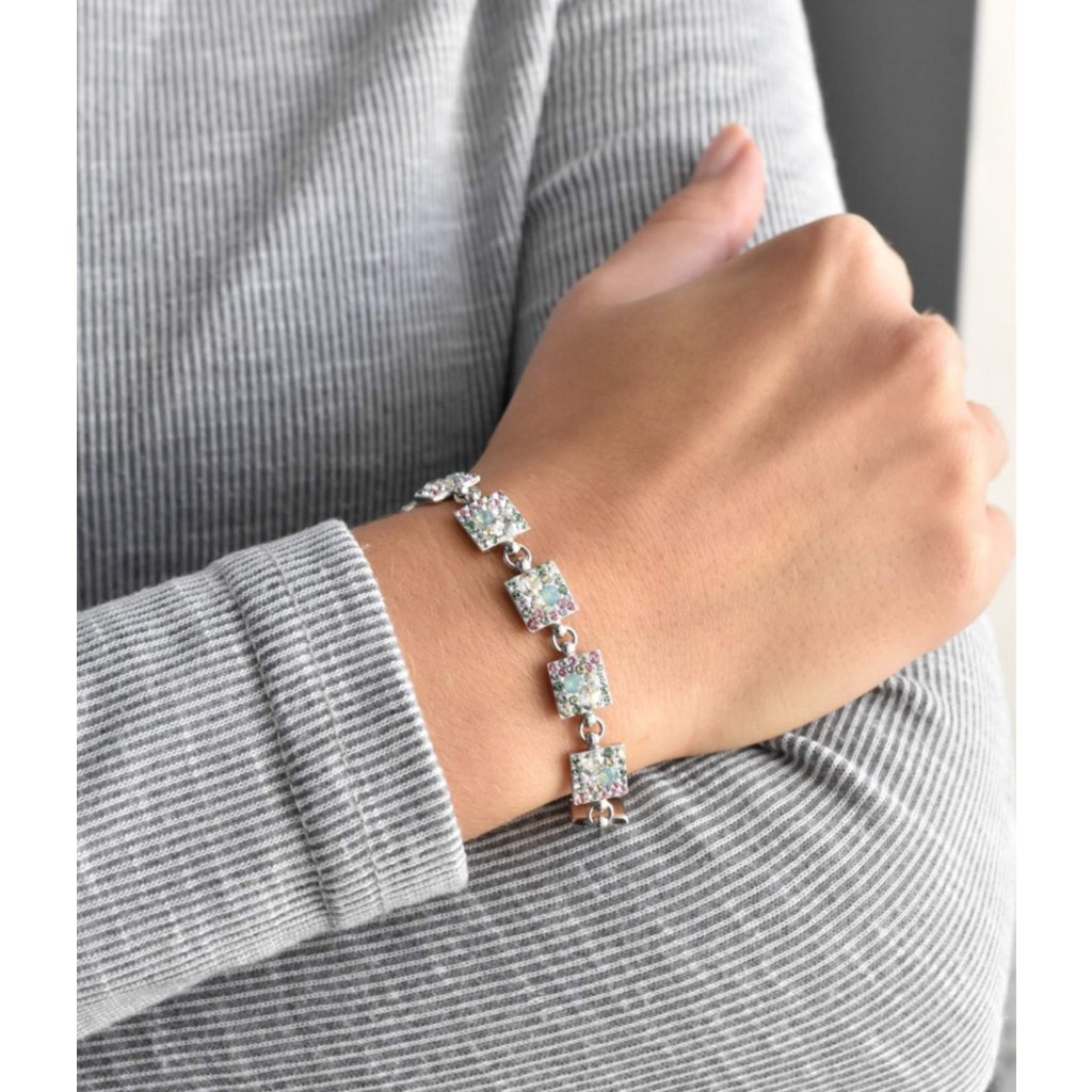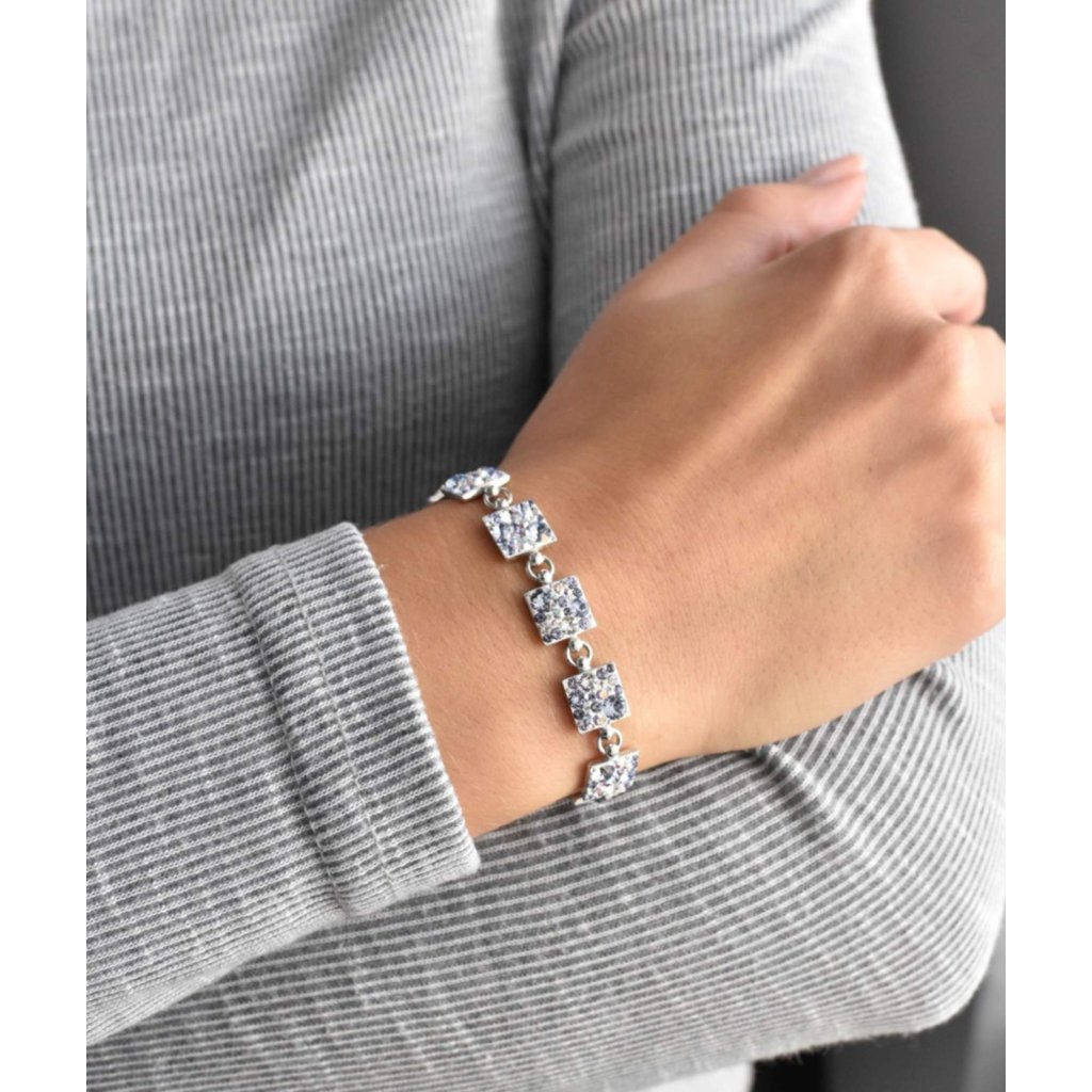 Náramek je vyrobený ze stříbra 925/1000 s povrchovou úpravou rhodiem. Rhodium chrání šperk před zčernáním, zežloutnutím a poškrábáním. Náramek o délce 17 cm je složený z několika čtverců osázených bílými Swarovski krystaly. Šperk neobsahuje nikl, a tak je vhodný pro citlivé osoby a alergiky.