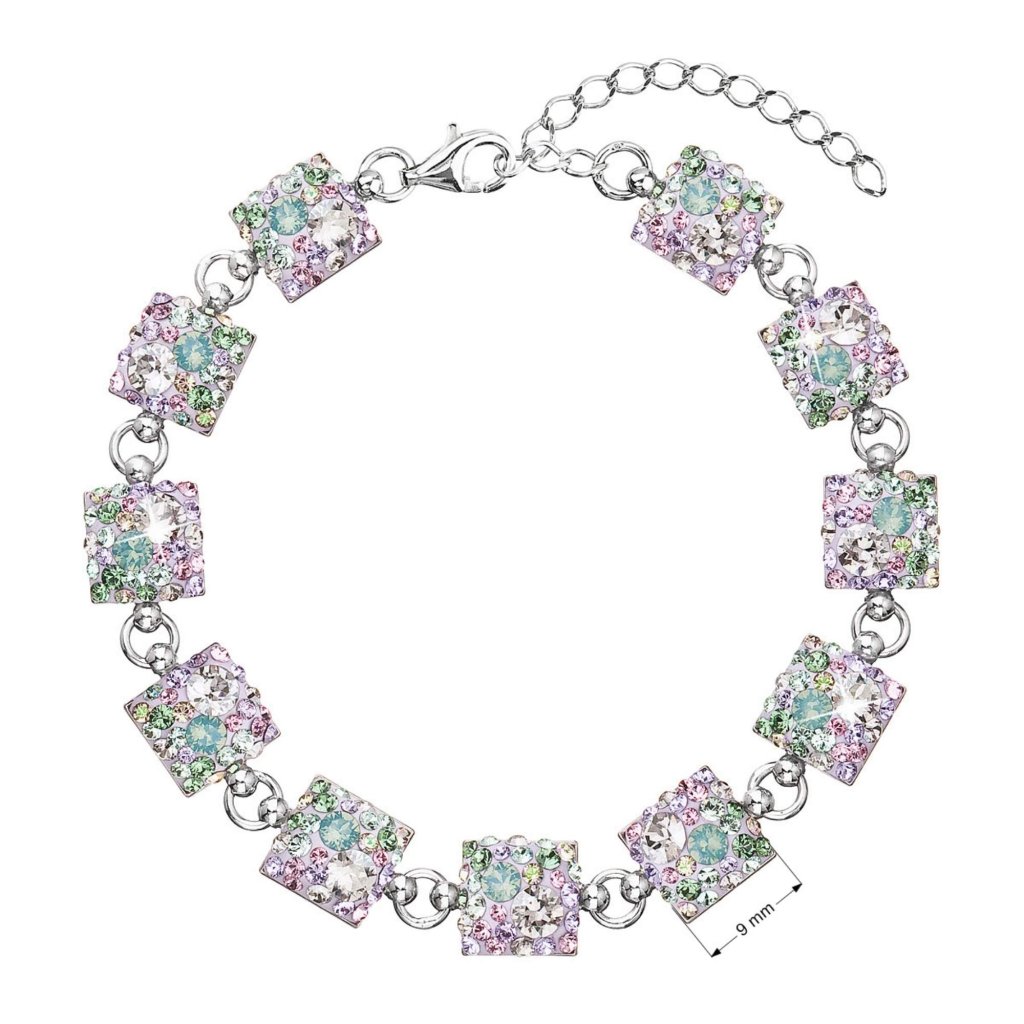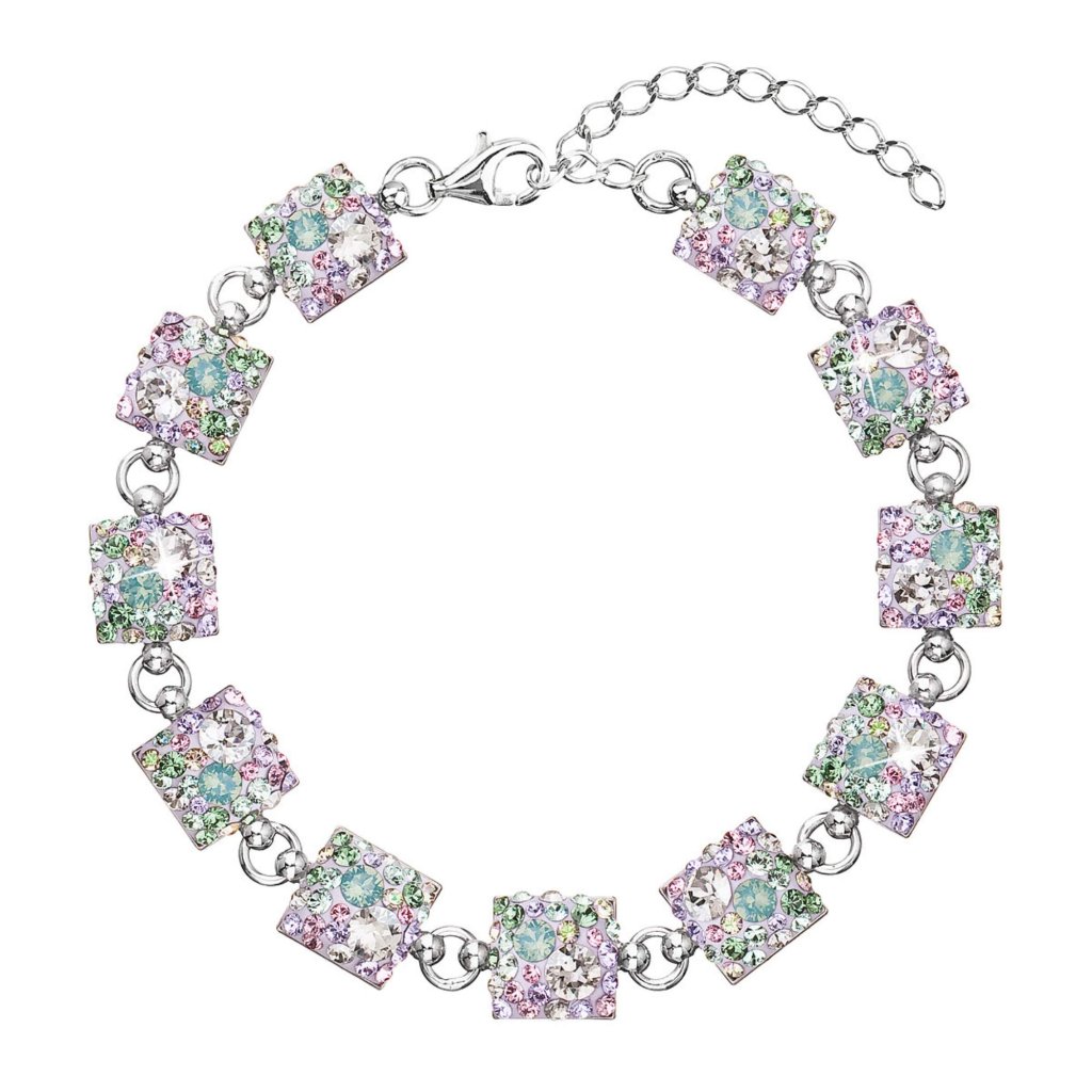 Stříbrný náramek se Swarovski krystaly v různých barvách.